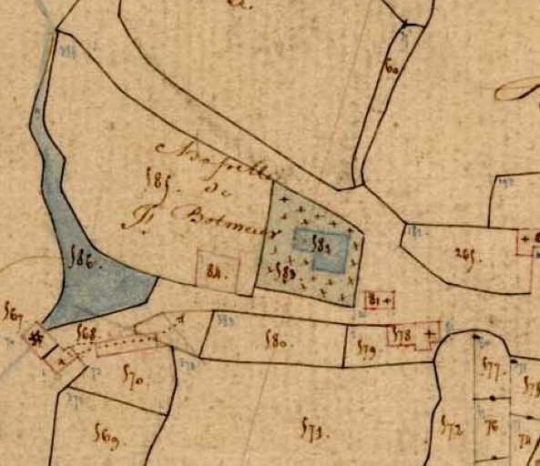 Chapelle Saint-Eutrope (détruite). Extrait du cadastre de 1836, section K (A.D. Finistère, 3 P 83)Immatriculation