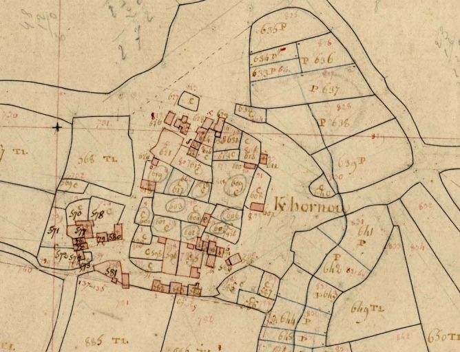Le hameau en 1813. Extrait du cadastre de Loqueffret, section A 3 (A. D. Finistère, 3 P 21)Immatriculation