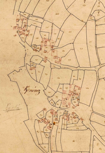 La partie est du village en 1836. Extrait du plan cadastral, section B2 (A.D. Finistère, 3 P 10)Immatriculation