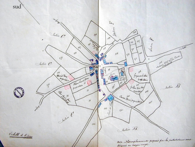 Plan du bourg en 1906 avec emplacements proposés pour l'école communale des fillesImmatriculation