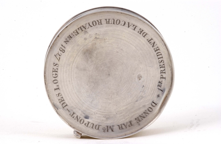 Vue générale de la boîte à hostie : inscriptionImmatriculation