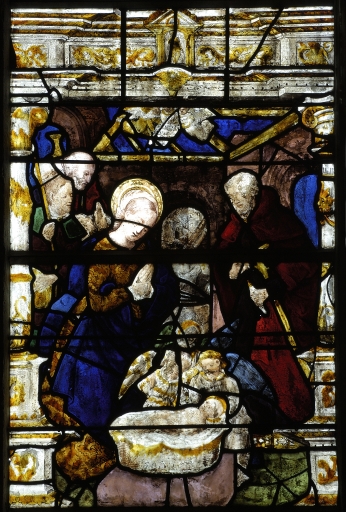 Verrière à personnages de la baie 4 : Enfance du Christ, Pentecôte,