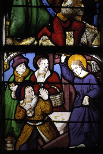 Verrière à personnages de la maîtresse-vitre (baie 0) : Passion,