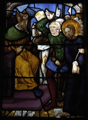 Verrière à personnages de la maîtresse-vitre (baie 0) : Passion,