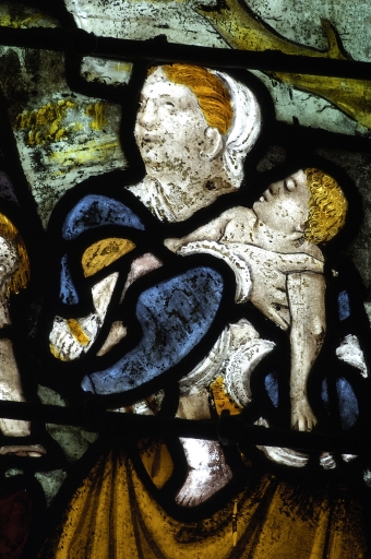 Verrière à personnages de la baie 3 : Paradis terrestre ; Enfance du Christ ; Baptême du Christ,