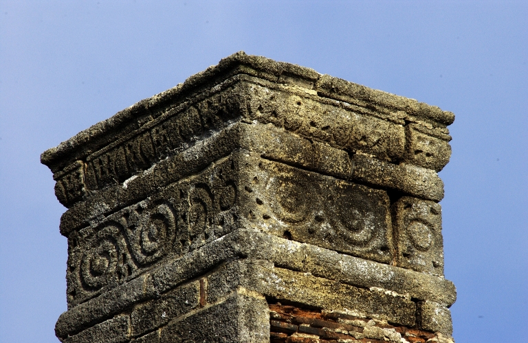 Souche extérieure de cheminée avec décorImmatriculation