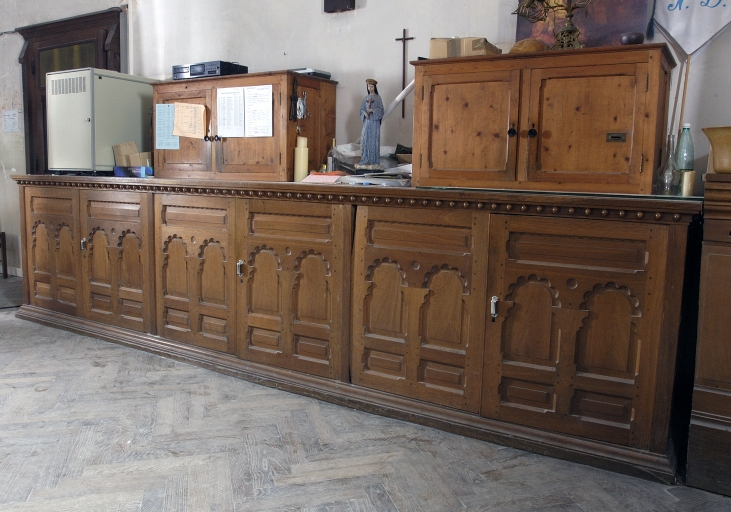 Meubles de sacristie : bureau, armoires, chasublier,