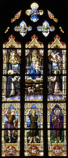 Verrière de la baie 4 : Donation du Rosaire à saint Dominique et à sainte Catherine de SienneImmatriculation