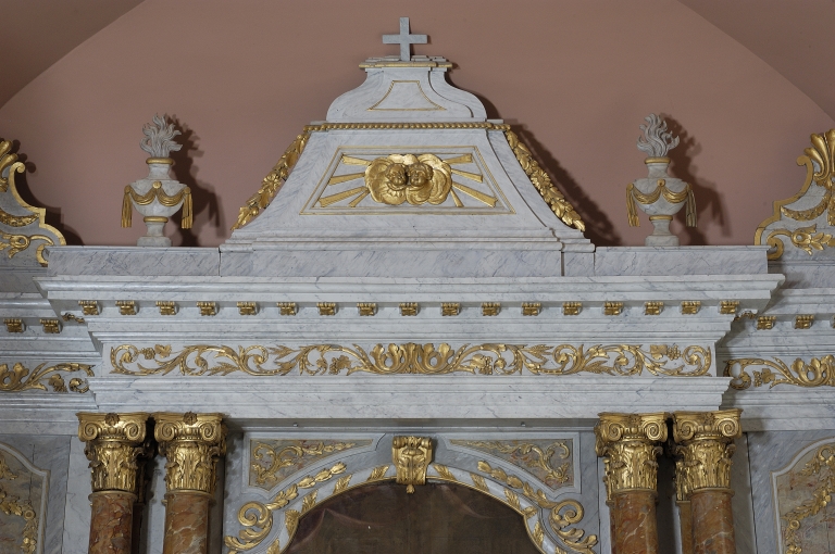 Ensemble du maître-autel : autel, tabernacle, 2 gradins d'autel, retable, 2 degrés d'autel, exposition,