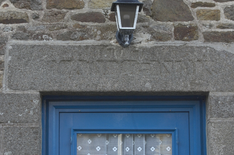 Façade nord : détail de l'inscription du linteau de la porteImmatriculation