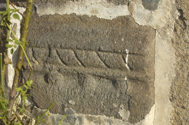 Façade sud : détail d'une pierre à motif de cordon de l'ancienne porteImmatriculation