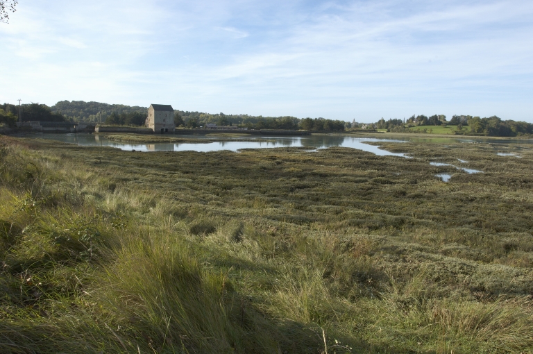 Vue de la Rance à marée basse et du moulin depuis le nord-estImmatriculation