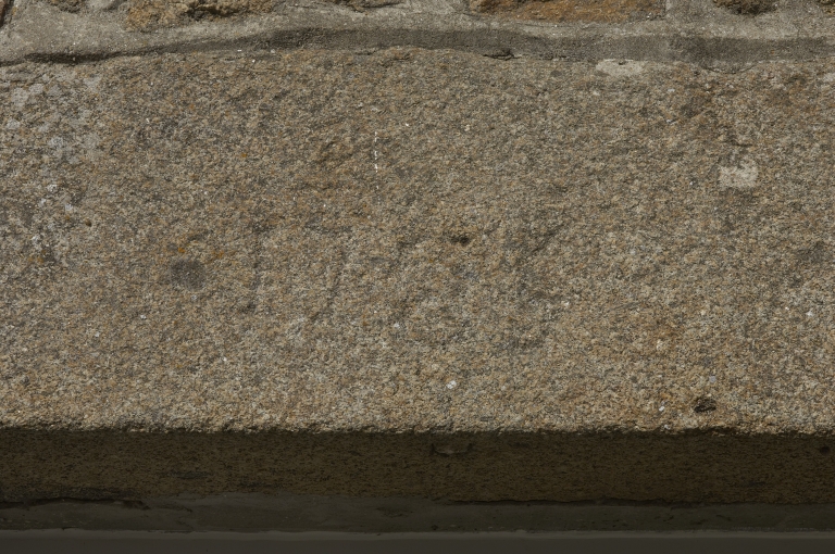 Elévation sud-est du logis : détail de la date gravée sur le linteau de la porteImmatriculation