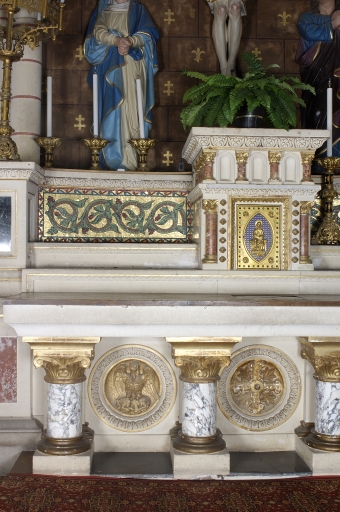 Ensemble du maître-autel : autel, tabernacle, 2 gradins d'autel, degrés d'autel,