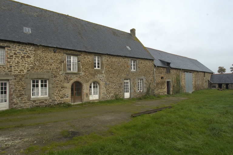 Vue générale de l'élévation sud-est du logis et d'une partie des dépendancesImmatriculation