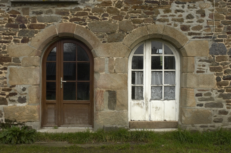 Elévation sud-est du logis : détail des portes jumelées à arc en plein cintreImmatriculation