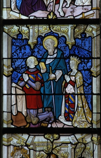 Verrière à personnages de la baie 108 (ancienne maîtresse-vitre) : Passion et Résurrection du Christ, Jugement dernier,