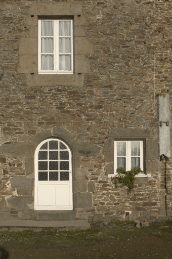 Elévation sud-est du logis : détail de la porte, des fenêtres et de la descente d'eau de la souillarde de l'étageImmatriculation