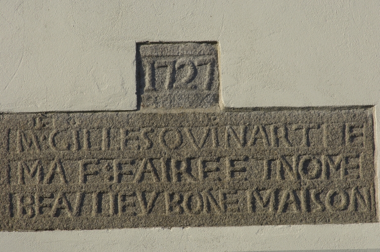 Pierre apparente avec inscription et date portée 1727Immatriculation
