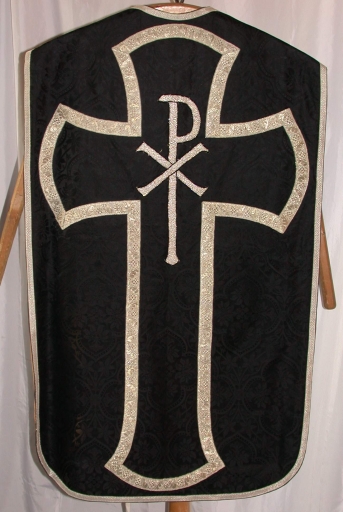 Ornement noir 2 : chasuble, bourse de corporal, étole, manipule, voile de calice,