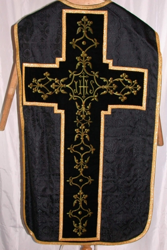Ornement noir 4 : chasuble, bourse de corporal, étole, manipule, voile de calice,