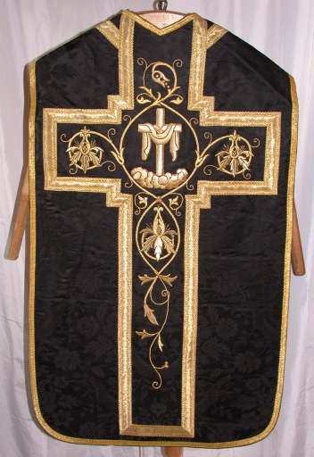 Ornement noir 5 : chape, chasuble, bourse de corporal, étole, manipule, voile de calice,