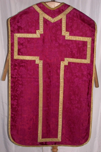 Ornement rouge 3 : chasuble, bourse de corporal, étole,