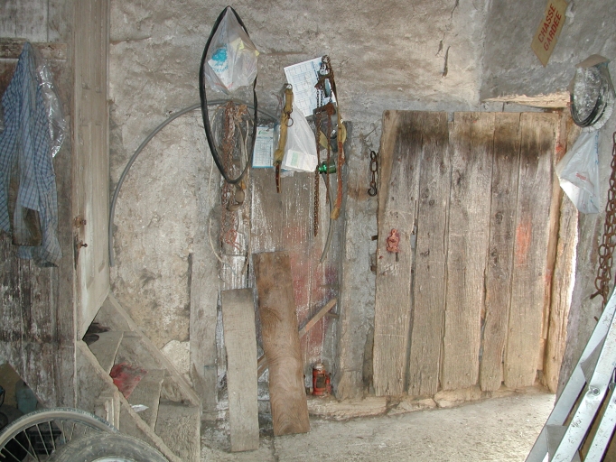 Débarras : porte ouvrant au sud et départ de l'escalier montant au grenierImmatriculation