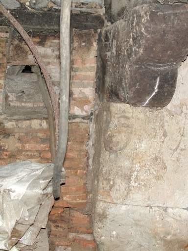 Détail du piédroits d'une cheminée conservée dans l'aile de dépendances nord-ouestImmatriculation
