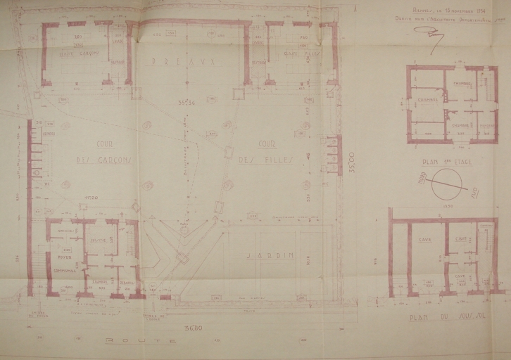 Plan d'une école primaire (non réalisée), dressé par Pierre Laloy, architecte, 1934Immatriculation