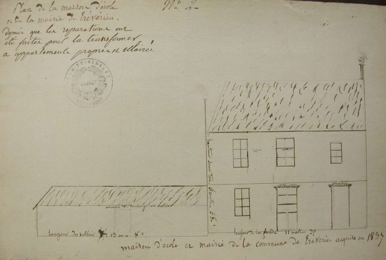 Plan de l'école et de la mairie en 1837Immatriculation