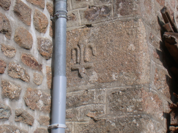 Pierre sculptée d'une fleur de lys, situé dans l'angle du logis daté 1711.Immatriculation