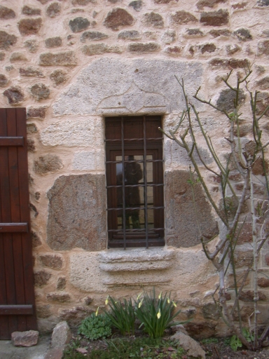 Détail, fenêtre avec linteau à accolade gravéeImmatriculation