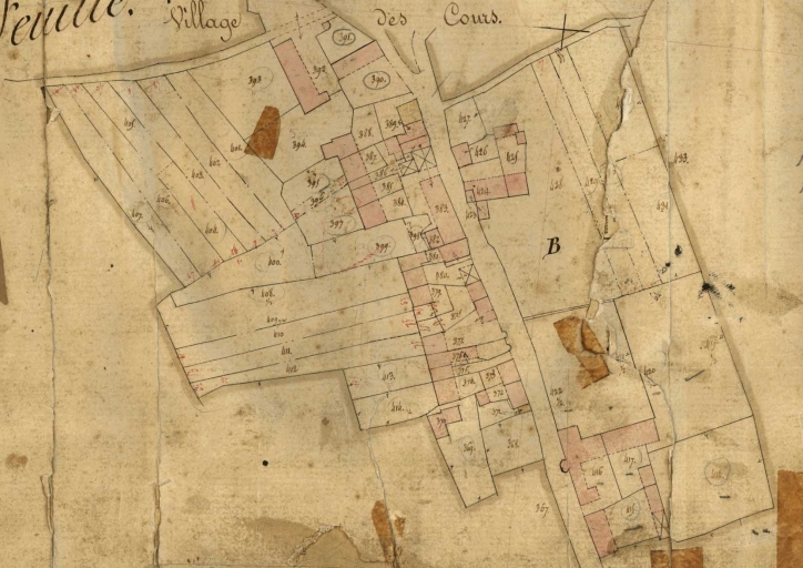 Le village des Cours sur le cadastre de 1834Immatriculation