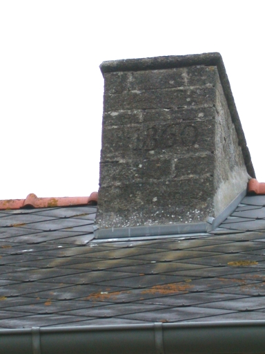 Logis, détail souche de cheminée datée 1860Immatriculation