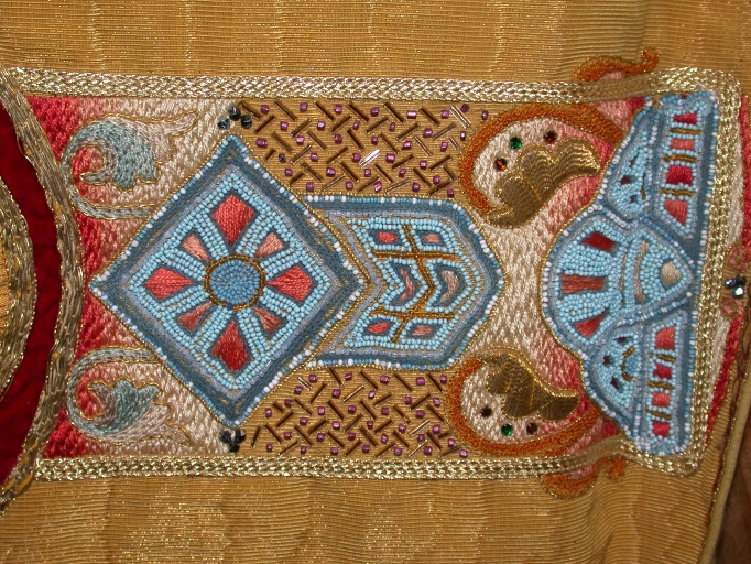 Ornement doré 2 : chasuble, bourse de corporal, étole, voile de calice,