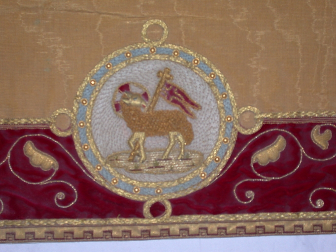 Ornement doré 2 : chasuble, bourse de corporal, étole, voile de calice,