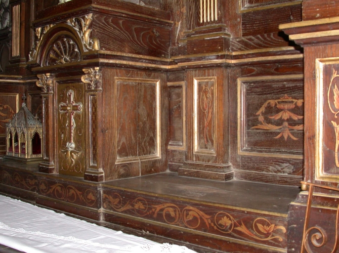 Ensemble de l'autel du Sacré-Coeur : autel, tabernacle, gradin d'autel, degré d'autel, retable,