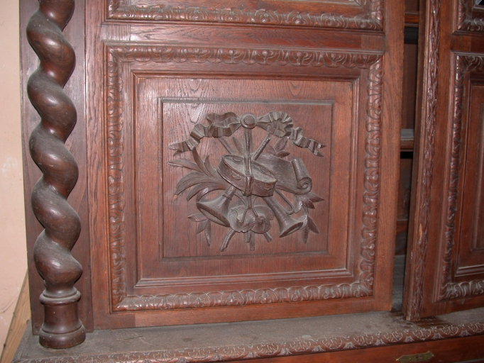 Bibliothèque, décor du battant gauche : panoplie musicaleImmatriculation