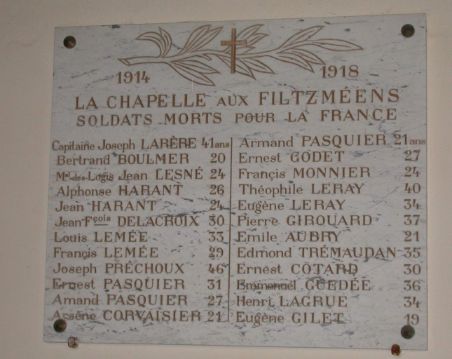 Tableau commémoratif des morts de la guerre 1914-1918,