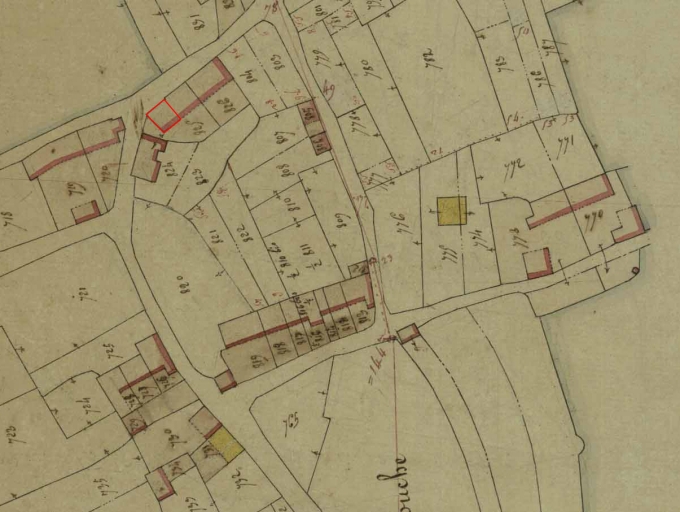 Cadastre de 1834 ; édifice cerné de rougeImmatriculation