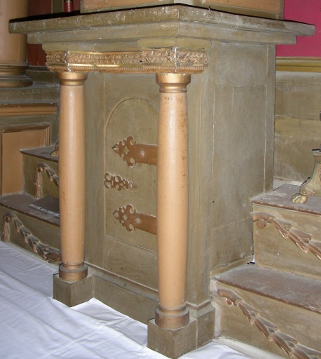 Retable latéral sud : autel, tabernacle, gradins d'autel et degrès d'autel,