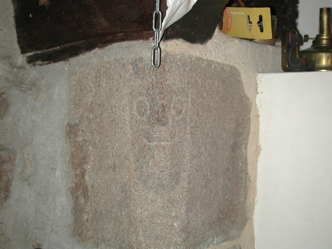 Vue intérieure : piedroit de la cheminée,détail d'une tête sculptéeImmatriculation