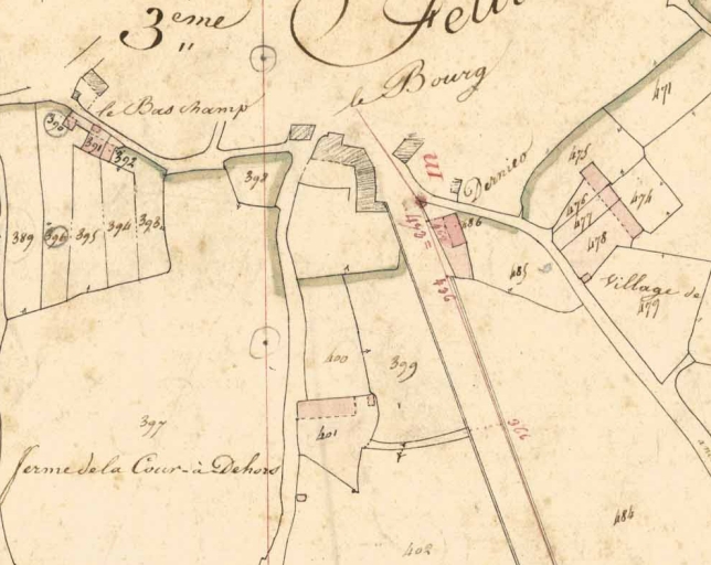 Le Bas Bourg, partie sud du bourg sur le cadastre de 1836Immatriculation