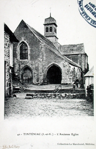 Vue des armoiries en place au-dessus de la verrière supérieure de la façade occidentale de l'ancienne égliseImmatriculation
