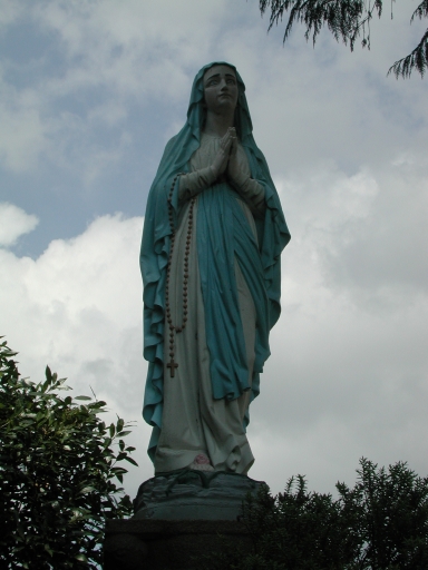 Statue 2 sur piédestal : Vierge, dite Notre-Dame de Lourdes à l'extérieur,