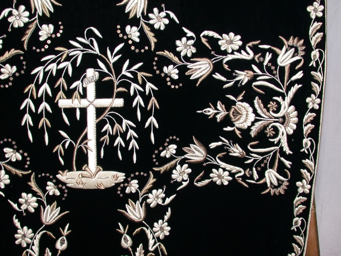 Ornement noir 3 : chasuble, bourse de corporal, étole, manipule, voile de calice,