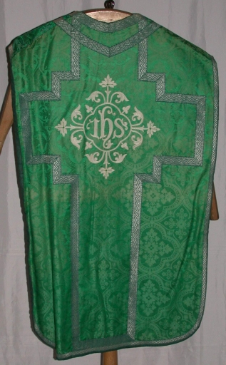 Ornement vert 4 : chasuble, étole, manipule, voile de calice,