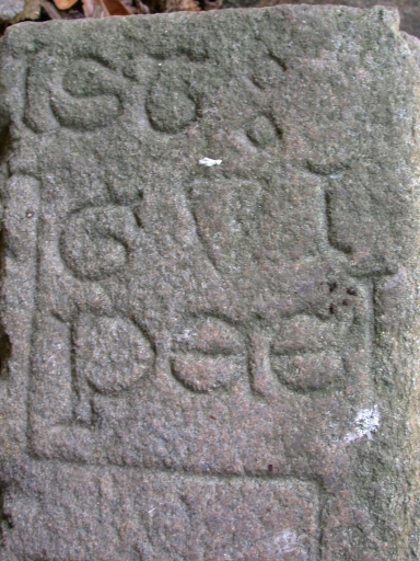 Dalle funéraire de Gui Peret ? (près de la chapelle extérieure),