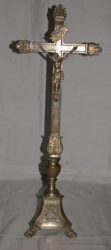 Garniture d'autel 4 : croix et série de 10 chandeliers,